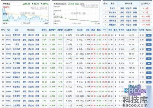 http://quote.eastmoney.com/bk/90.bk0666.html(苹果概念股行业数据排行)