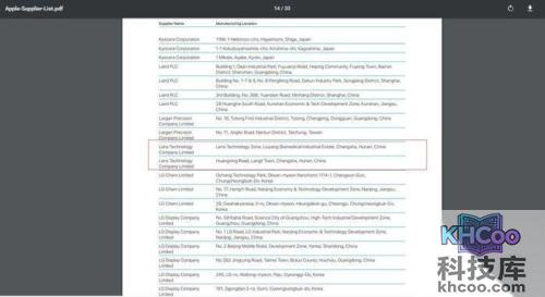 蓝思科技(https://www.apple.com/supplier-responsibility/pdf/Apple-Supplier-List.pdf)