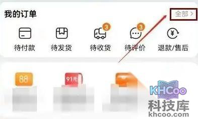 在手机上打开淘宝进入“我的淘宝”页面,点击“订单”选项