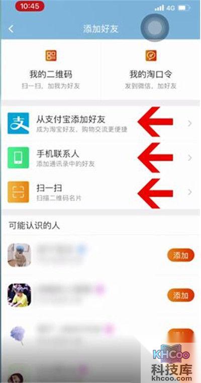进入添加淘友界面之后大家可以选择添加的方式,比如 支付 宝添加、手机联系人添加、扫一扫添加都是可以的,添加完成之后双方就可以 聊天 了。