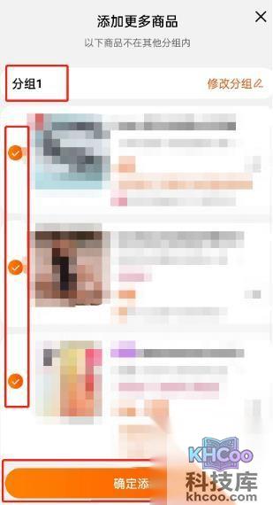5、设置好分组名称,勾选商品,点击确定添加。