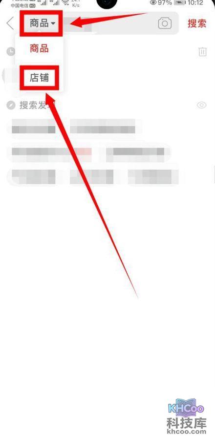 2、接下来我们点击搜索框左侧商品图标打开下拉框选择店铺选项;