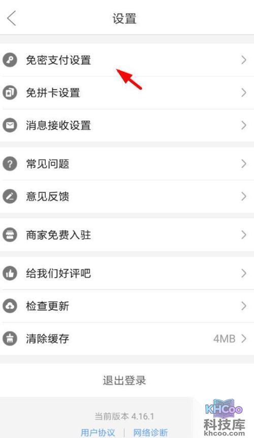 2、接下来从设置页面的上方直接选择“免密支付设置”的选项,就可以去设置微信或支付宝的免密支付功能了。