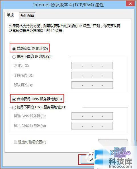 4.选择“自动获得IP地址”“自动获得DNS服务器地址”,确定即可: