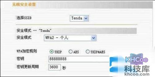 4、接着再点击左侧的“无线设置”下的“无线安全设置”链接,在打开的“无线安全设置”界面中设置相关的无线加密参数,建议使用WPA2,设置完成后点击“保存”按钮:
