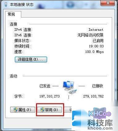 这样就能打开本地连接状态,看到“禁用”按钮没有?点击,过一会后,选择“启用”,是不是简单就搞定了?
