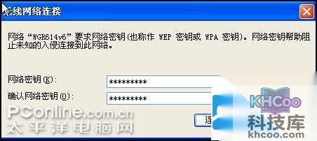 发现SSID为WGR614v6的无线网,但是起用了安全机制,双击该无线网络,或者连接:
