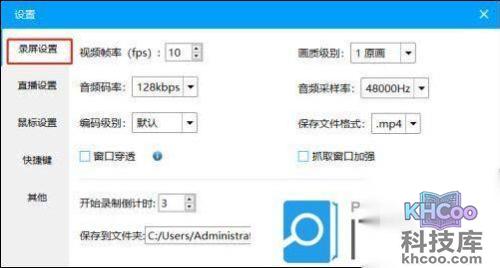 3、点击左侧“录屏设置”选项,
