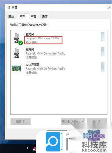 2、接着点击系统【声音】,选择【录制】,然后选择正确的默认设备,尤其是在同时插入了多个设备的时候,一定要确保默认设置是你本人现在在使用的这个;