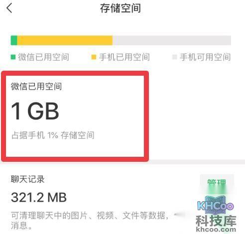5、进入到存储空间页面后,在这里,就可以查看到微信占用手机多少内存空间了。