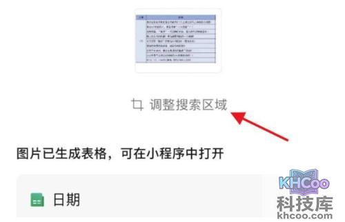 4、可以调整转换为电子表格的区域,也可以在小程序中找到该电子表格。