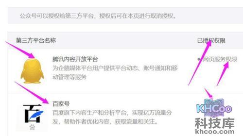 4、然后就可以看到你所授权的自媒体平台,上面清楚的写着授权的平台,和授权的权限。这就意味着你在公众号上发的文章,都会自动更新到这些平台上去。