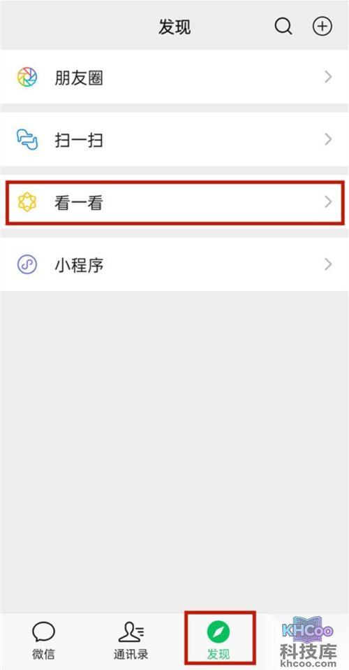 1、点击发现,点击看一看。