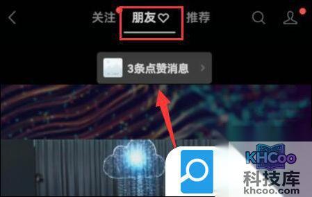 4、如果你的好友点赞或评论过一个视频,可以在上方“朋友”处看到点赞或评论的消息。
