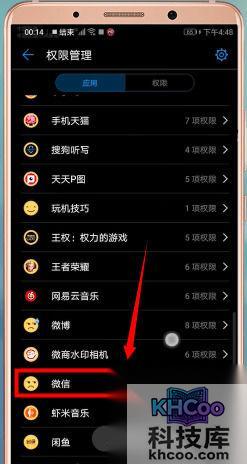 接着找到并点击【微信】,点击【设置单项权限】