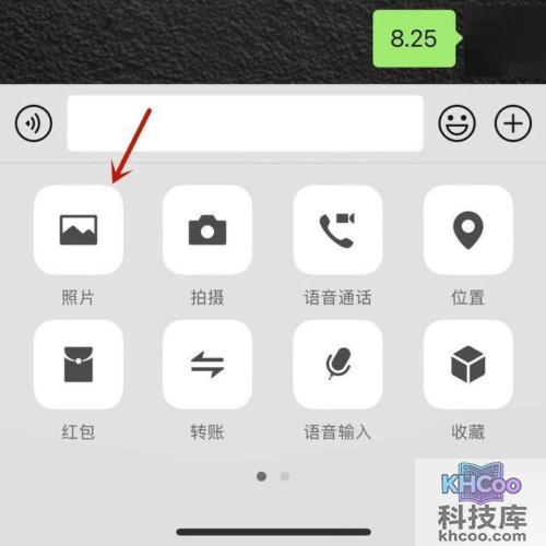 2、然后在微信聊天界面,点击界面的照片选项。