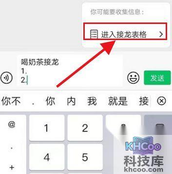 2、然后在文本框输入接龙事项,并填写到2.右侧就会出现接龙表格,点击进入。