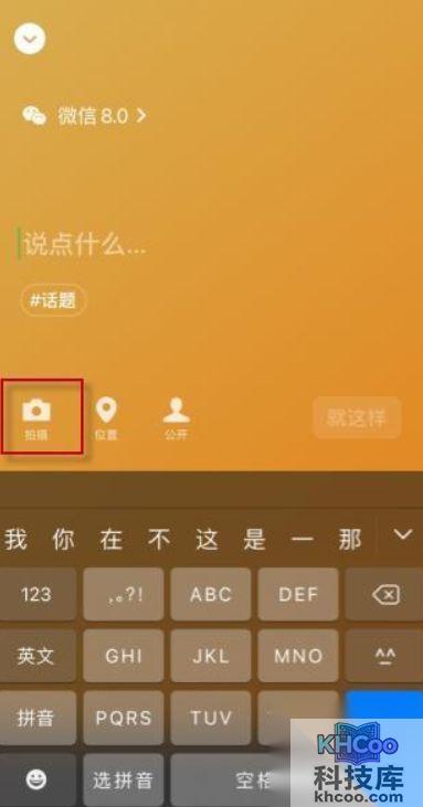 3、点击状态编辑界面的“拍摄”即可拍摄或上传本地图片作为状态背景图。