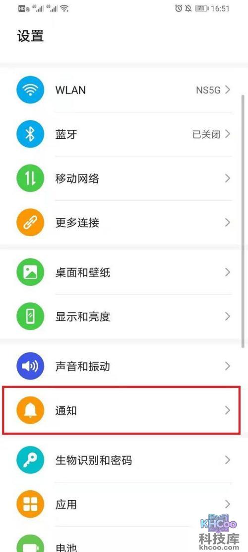2.在设置界面找到找到【通知】;
