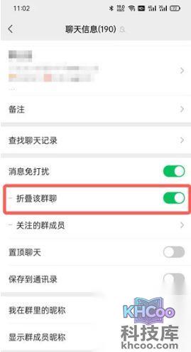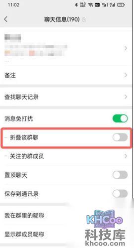 5、当该折叠该群聊功能右侧的按钮变成灰色后,即可取消该群聊折叠。