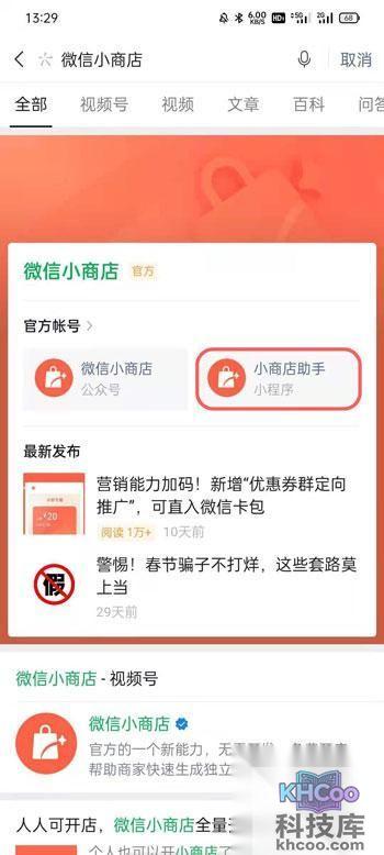 1、打开手机上的微信,搜索【微信小商店】,然后点击小商店小程序进入;
