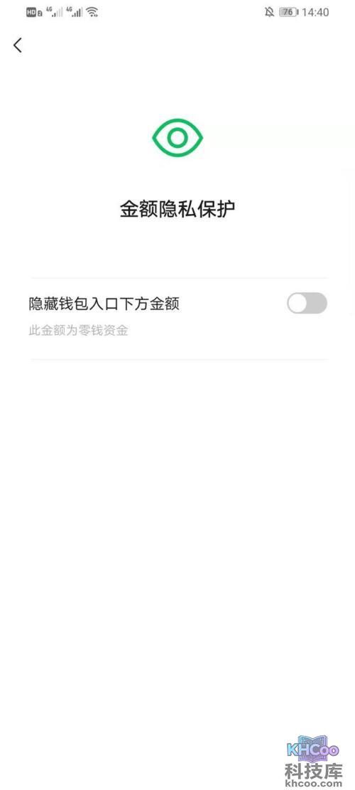 6、在【金额隐私保护】界面中点击打开【隐藏钱包入口下方金额】即可完成操作。