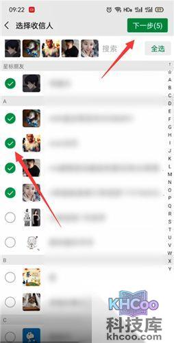 7、之后就需要选择收信人,选择完成后点击右上角的“下一步”