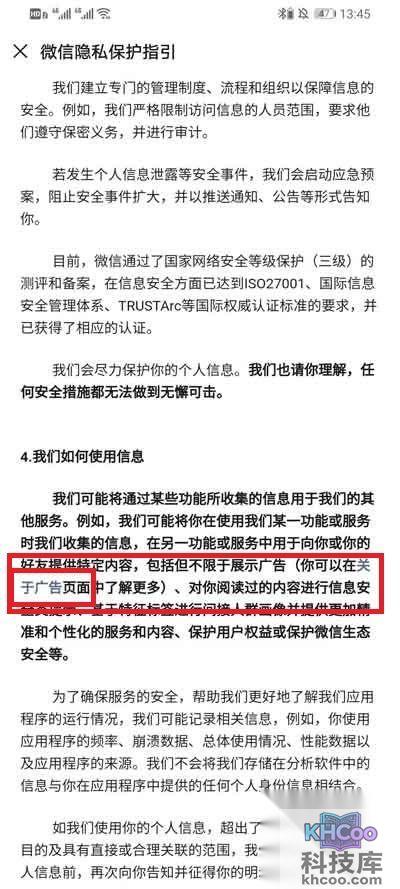 4、在关于微信界面,点击下方的【隐私保护指引】进入到隐私保护条款文章中;