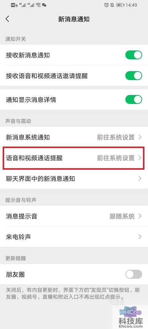 3.在此界面中,点击【语音和视频通话提醒】,进入到此功能的界面中;