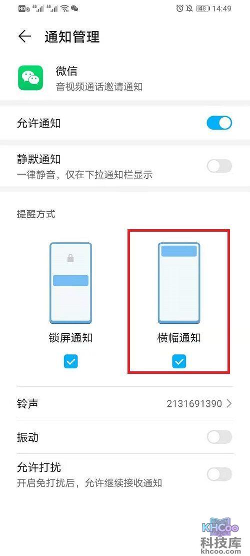4.然后点击【横幅通知】只要打开横幅通知就可以完成设置,让我们可以在接微信电话的时候不会这么突兀。
