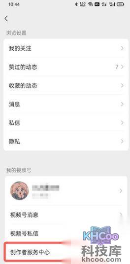 2、在下方找到【创作者 服务 中心】点击进入;