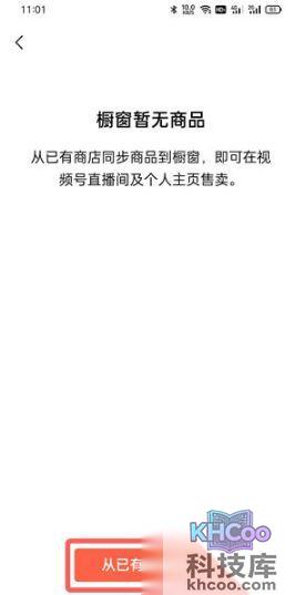 4、点击【从已有商店添加】按钮,从自己开通的小商店中选择商品在视频号中展示;