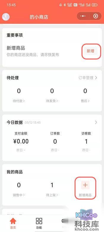 7、然后点击【新增】按钮上架商品,或者下滑找到“我的商品”,选择 【新增】;