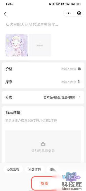 9、编辑自己需要上架商品的内容,例如名称、价格、库存、分类之类的,可通过【预览】来查看具体展示效果;