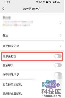 2、上下滑动找到【消息免打扰】功能,开启该群聊消息免打扰;