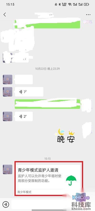4、发送之后,等待监护人去点击邀请信息,然后进入到邀请信息界面中;