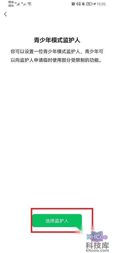 2、然后在此功能界面中,可以看到下方的【选择监护人】按钮,点击此按钮,进入到选择监护人界面;