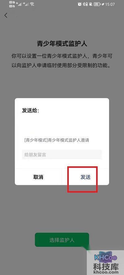 3、点击后会跳转到微信的联系人列表,我们需要找到自己的监护人,然后点击发送监护人邀请消息;