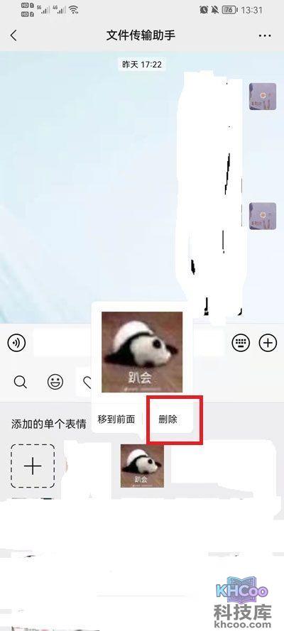 3、然后在表情包界面中,我们可以长按表情包,在弹出来的弹窗中,点击删除,即可删除表情包。