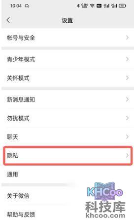 2、然后在微信设置中,点击【隐私】设置;
