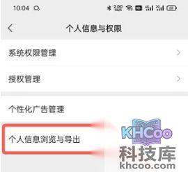 4、选择【个人信息 浏览 与导出】设置;