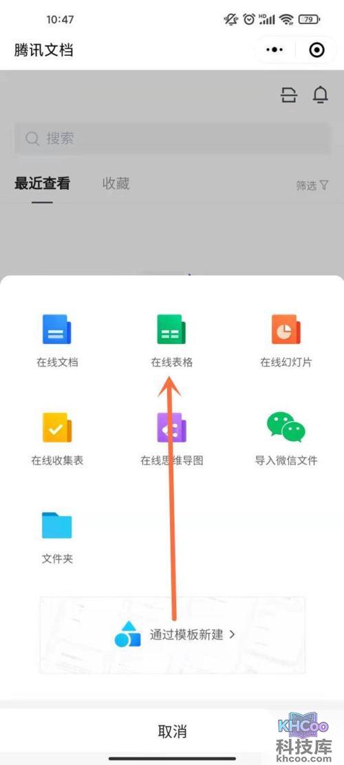 1、在微信进入腾讯文档小程序,点击底部的“+”,再点击“在线表格”。