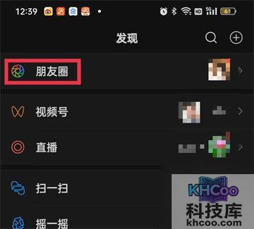 2.进入到发现的页面后我们点击屏幕顶部的【朋友圈】;