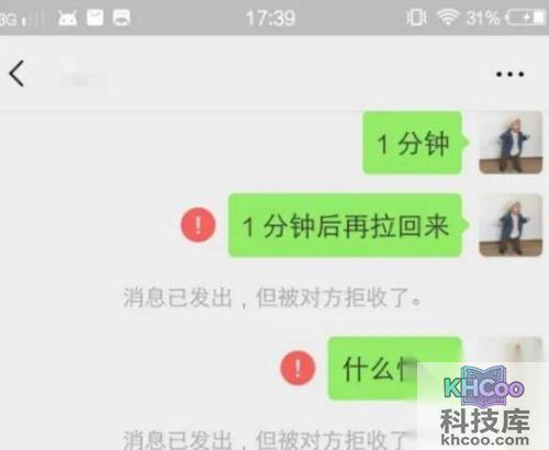 如果我们将对方拉黑会给对方出现以下提醒。