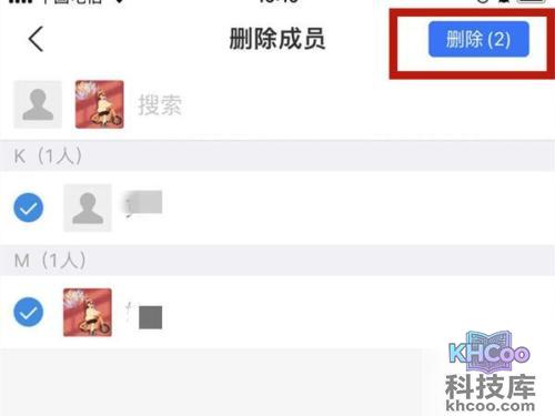 3、将全部成员都勾选,点击删除。