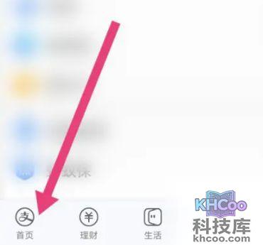 打开手机支付宝,点击左下角的首页。