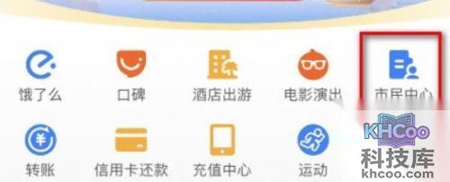 【1】首先需要用户登录支付宝客户端,在首页的应用页面选择“市民中心”;