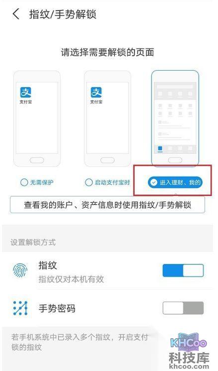 第四步:进去解锁设置之后,选择进入理财、我的界面需要解锁