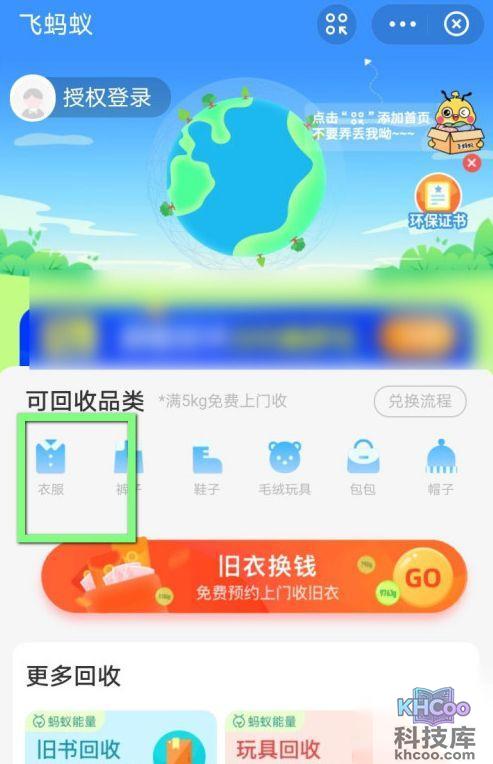 3、进入回收页面以后,点击可回收类下方的衣服。