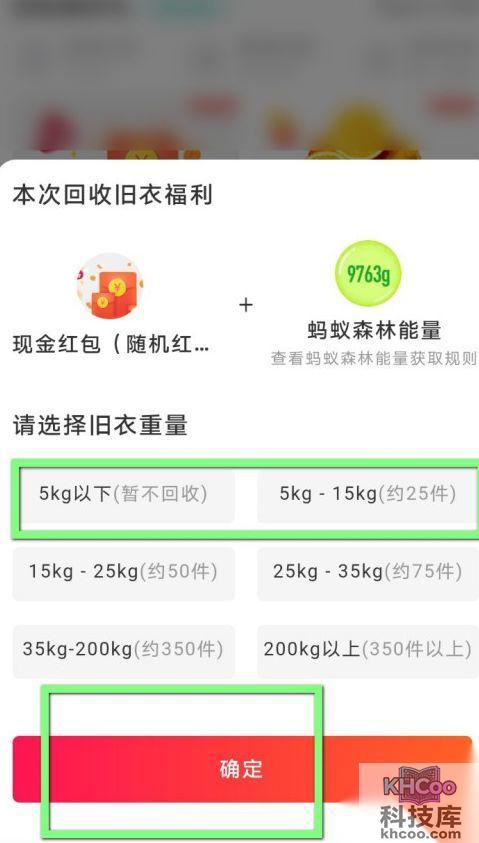 5、在里面选择衣服的重量点击确定。